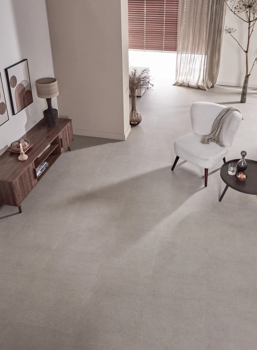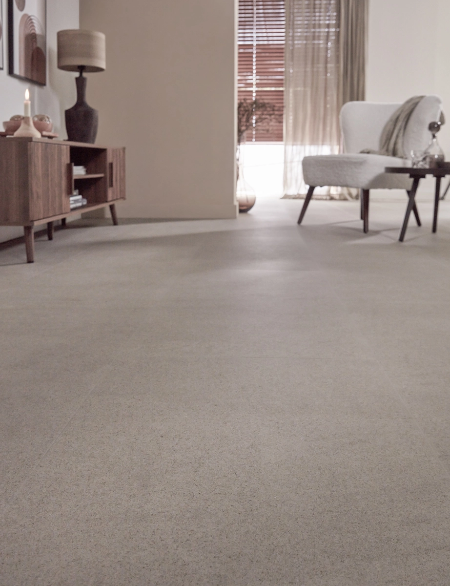 Die Floer Tile Vinyl - Concrete Look Greige kombiniert den robusten, industriellen Charakter von Beton mit dem warmen Aussehen von Vinyl. Der subtile graue Farbton und die einzigartige MEGAMAT-Oberfläche verleihen diesem Fliesen-PVC-Boden eine warme Ausstrahlung. Dank seiner fühlbaren Struktur und den großzügigen Abmessungen von 91,4 x 45,7 cm bietet der Boden die authentische Optik von Betonfliesen, aber mit der Leichtigkeit und Haltbarkeit von Floer Vinyl.