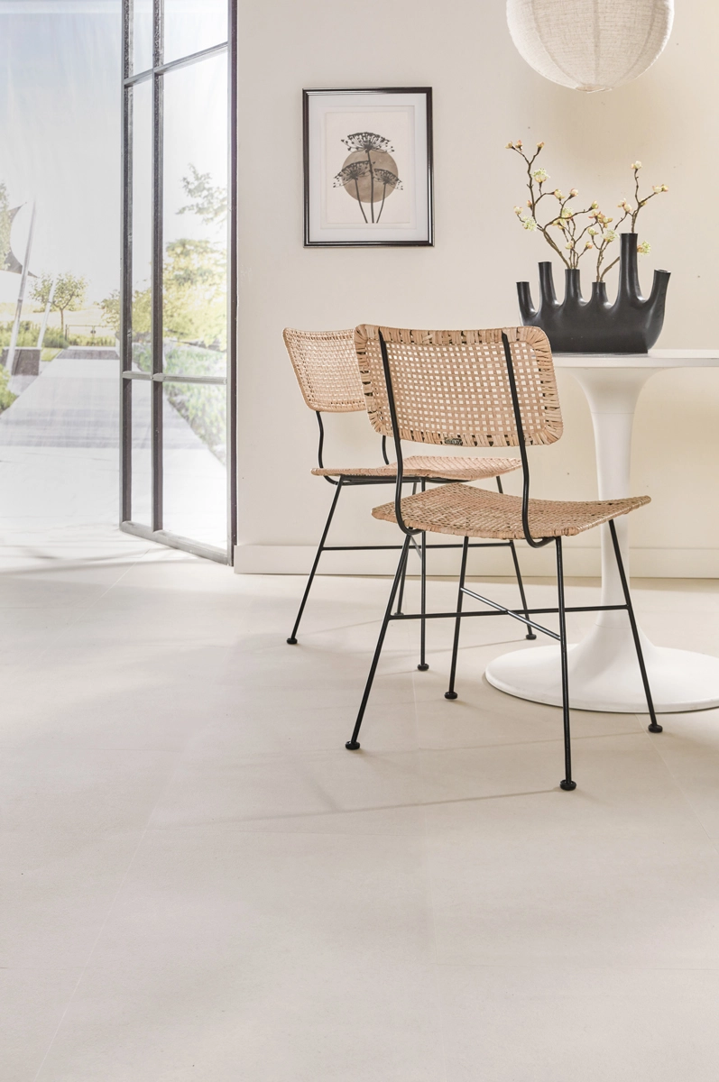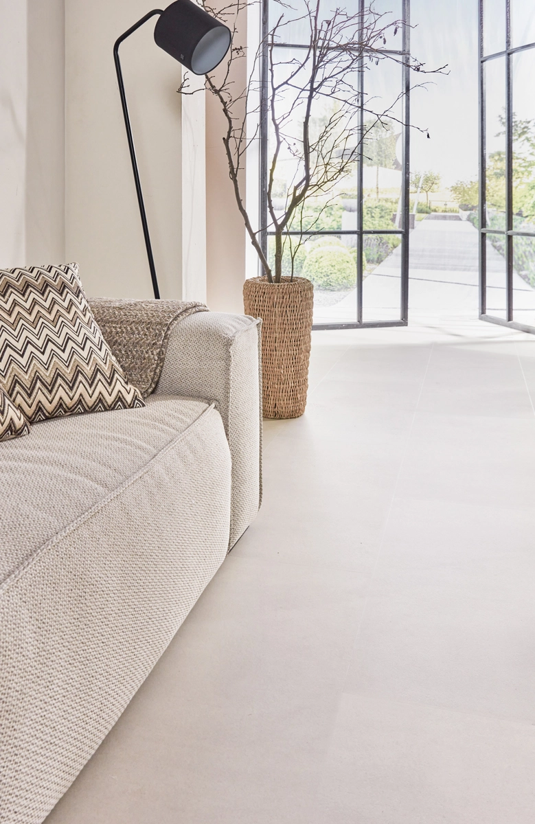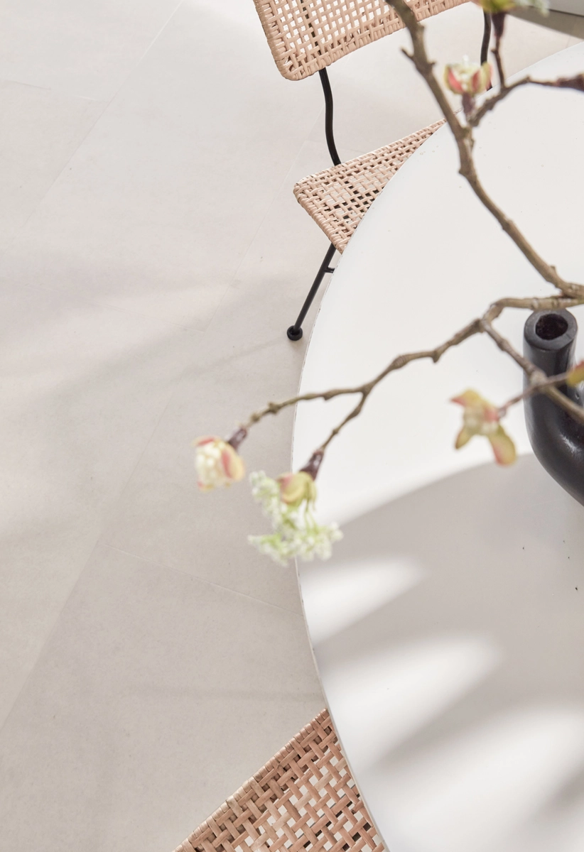 Neben seiner Wasserbeständigkeit lässt sich dieser Fliesenboden problemlos mit Fußbodenheizung und -kühlung kombinieren. Der geringe Wärmewiderstand von nur 0,019 m²K/W sorgt dafür, dass Sie im Winter warme Füße genießen. Mit seiner sandfarbenen Betonoptik und seinen praktischen Eigenschaften ist dieser Boden die perfekte Wahl für einen vielseitigen Innenraum. Auf diese Weise erhalten Sie das Aussehen echter Betonfliesen, jedoch mit allen Vorteilen von Floer Vinyl.