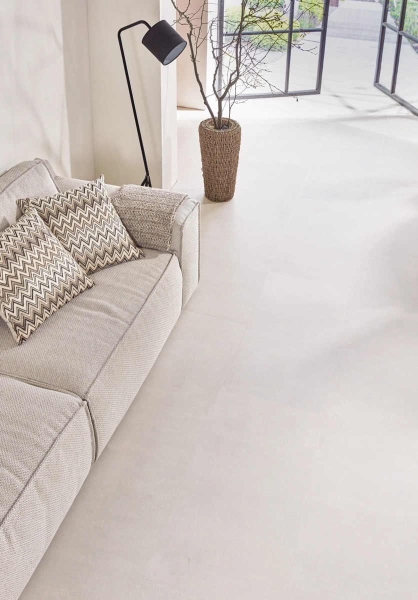 Der Vinyl-Boden „Concrete Look Sand“ verfügt über eine 0,55 mm starke Nutzschicht und ist dadurch äußerst kratzfest. Dadurch ist der Boden perfekt für die intensive Nutzung im Haushalt geeignet. Die MEGAMAT-Oberfläche bietet nicht nur eine luxuriöse matte Optik, sondern auch zusätzliche Griffigkeit, wodurch dieser Boden ideal für Haushalte mit Kindern und Haustieren ist. Dank seiner 100-prozentigen Wasserbeständigkeit ist dieser Boden auch für Feuchträume wie Bad oder Küche geeignet.