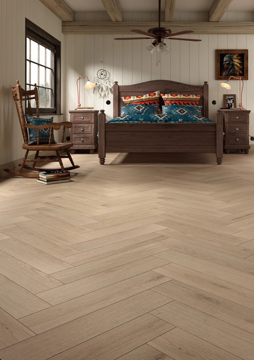 Die einzigartige Greige-Farbe vermittelt Ruhe und Wärme, mit einem subtilen Farbspiel, das sich dem Licht in Ihrem Zuhause anpasst. Die fühlbare Struktur verstärkt die Holzoptik, während die vierseitige V-Fuge das Fischgrätmuster klar hervorhebt. Das Ergebnis ist ein Boden mit Tiefe, Charakter und stilvoller Ausstrahlung – ohne aufdringlich zu wirken.