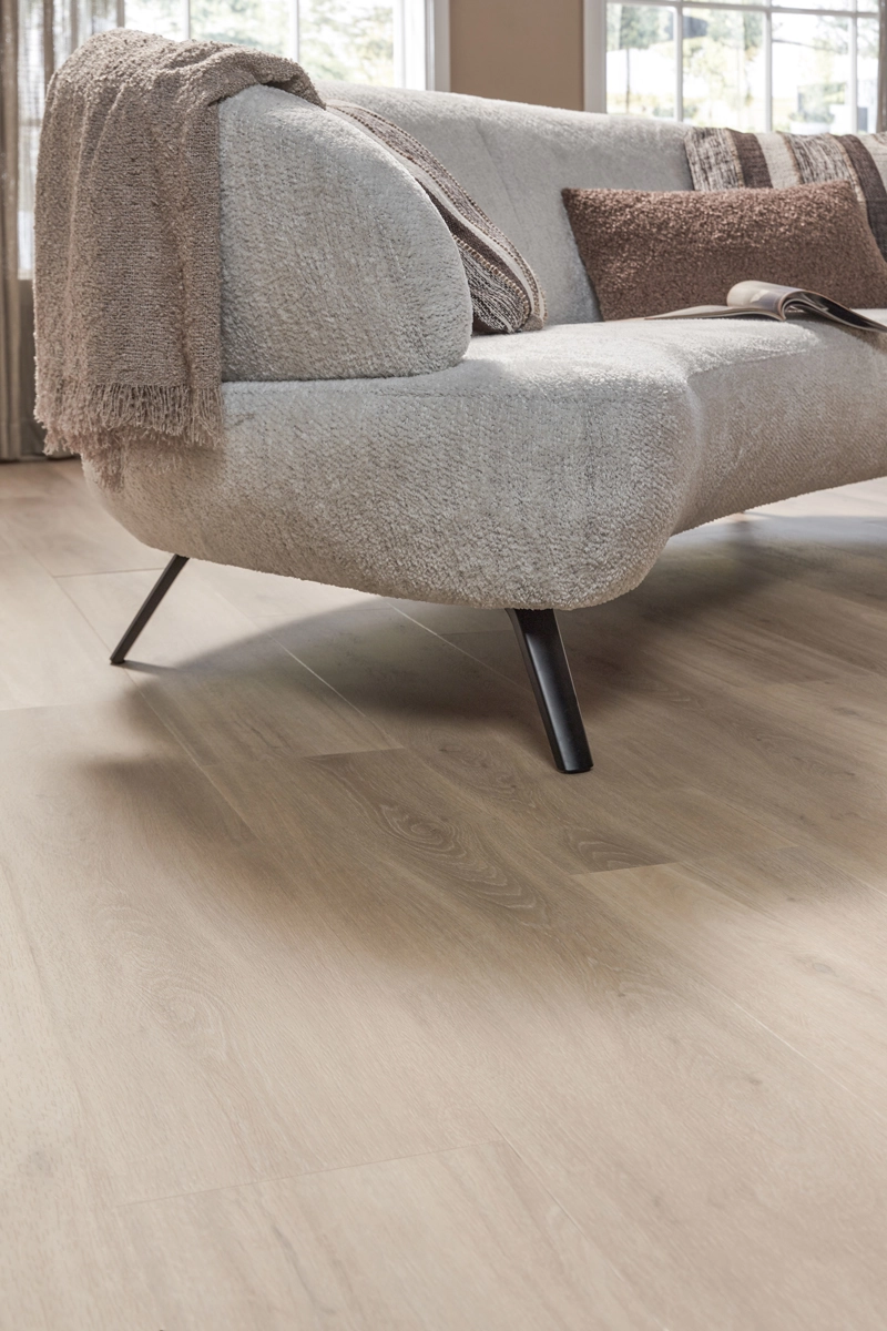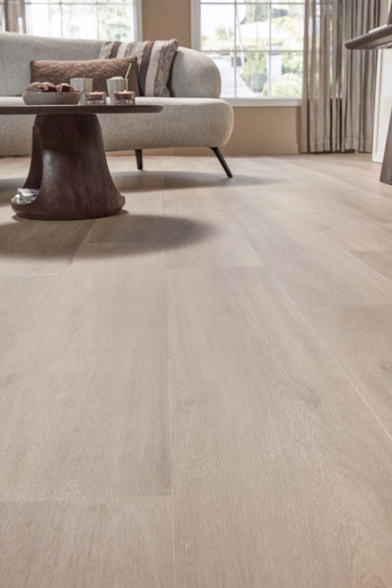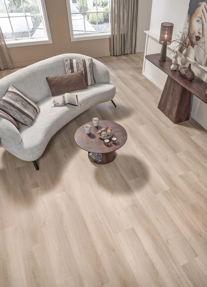 Der helle Vinyl Boden aus Eiche ist nicht nur völlig wasserfest, sondern hat auch einen Wärmewiderstand von nur 0,039m2K/W, wodurch er sich sehr gut für Fußbodenheizungen eignet. Der Boden ist sowohl für die intensive private als auch für die intensive gewerbliche Nutzung geeignet. Für den Hausgebrauch erhältst du eine Herstellergarantie von nicht weniger als 20 Jahren auf die Klick Vinyl Böden in Kombination mit dem Rigid Klick Vinyl Unterboden!