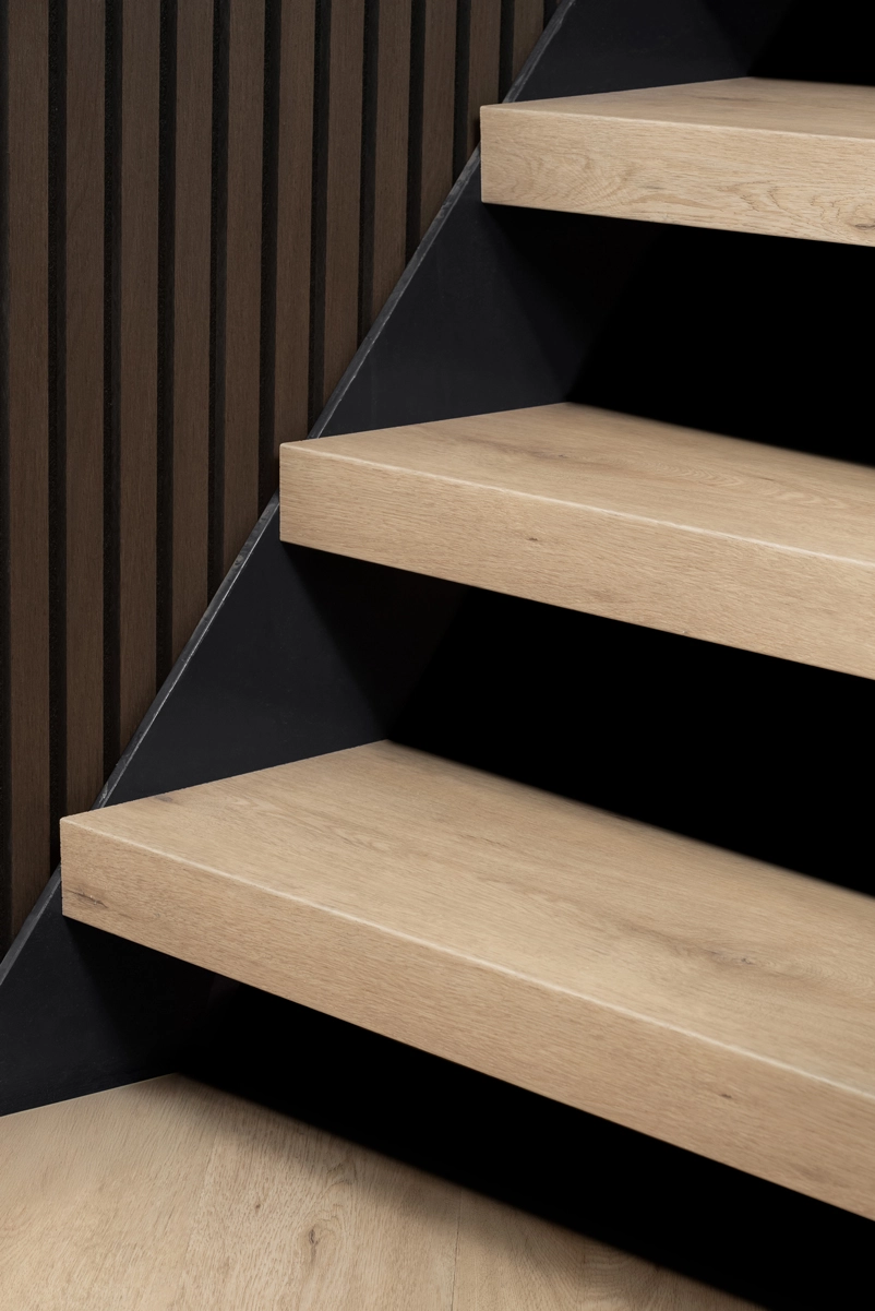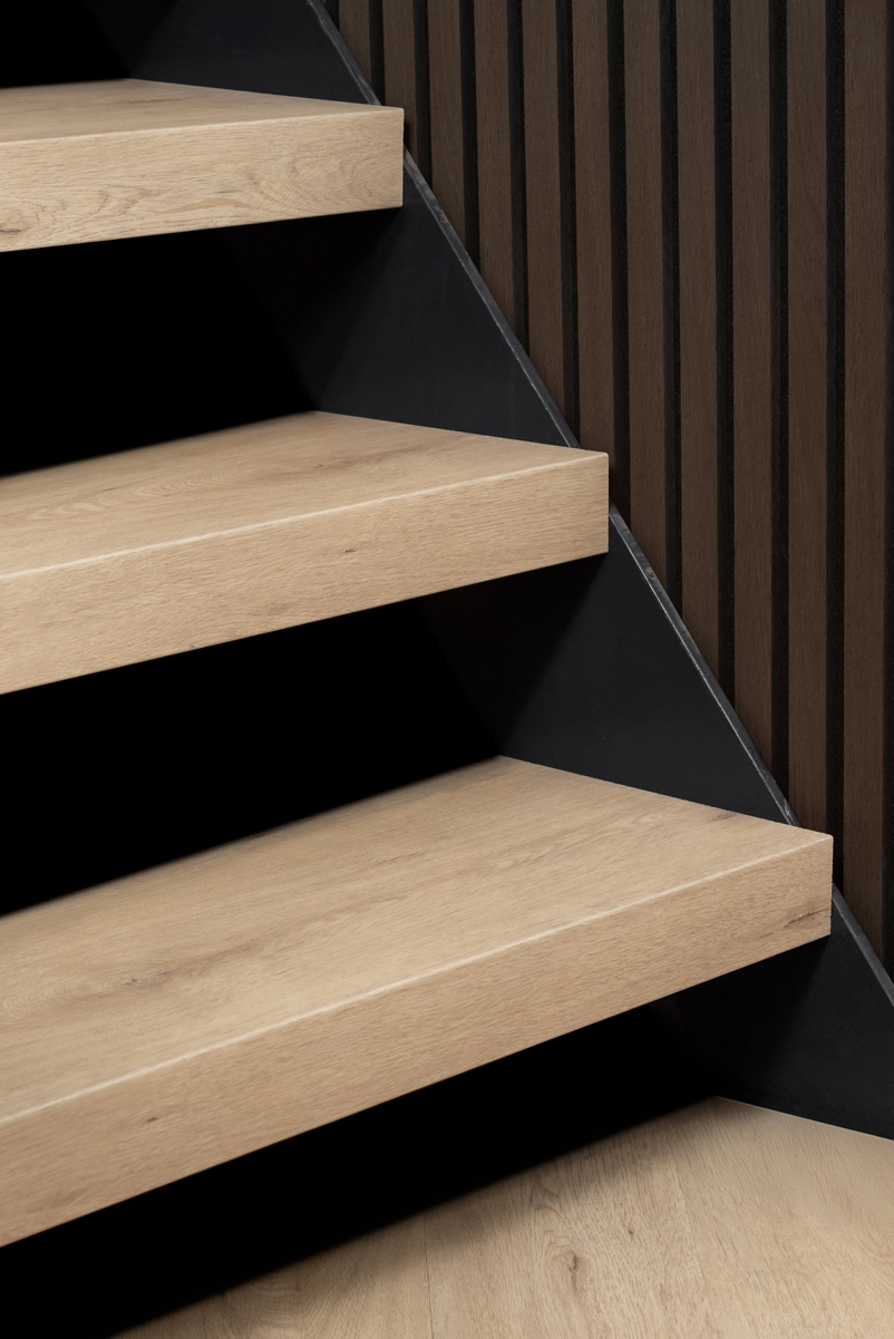 Dank der Tiefe von 66,5 cm und der abgeschrägten Nasen auf beiden Seiten eignen sich diese Setzstufen ideal für die vollständige Verkleidung offener Treppen. Sie lassen sich einfach zuschneiden, sodass aus einer Stufe zwei Paneele entstehen – ideal für eine schnelle und effiziente Montage. Kombinieren Sie sie mit den passenden treppenverkleidung für ein rundum perfektes Ergebnis. Für besonders breite Stufen sind neben den 100-cm-Aufsetzstufen auch 138-cm-Varianten verfügbar.