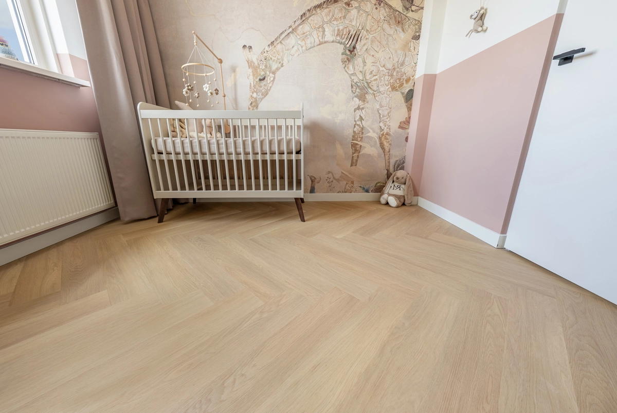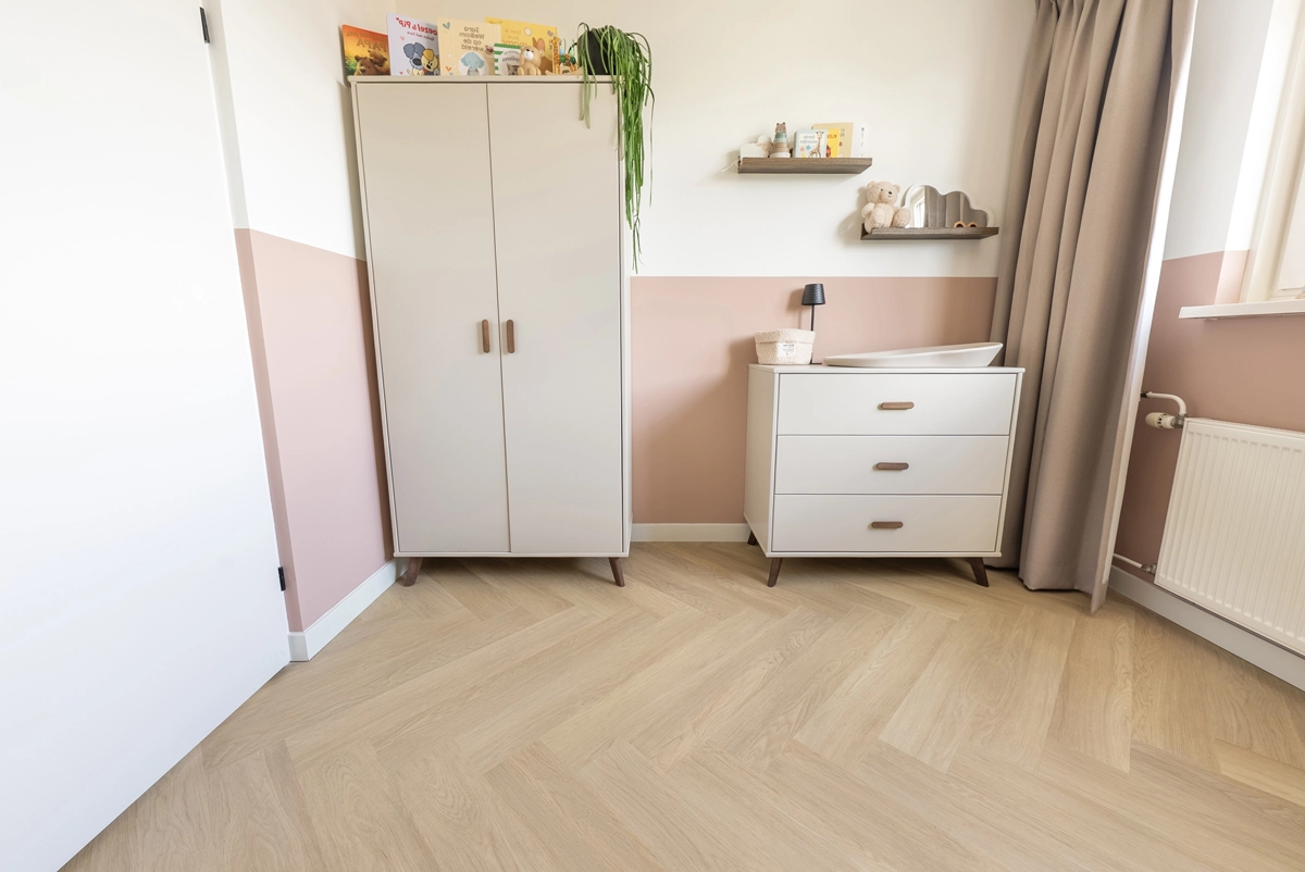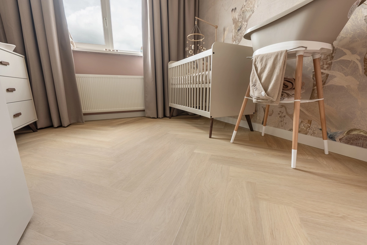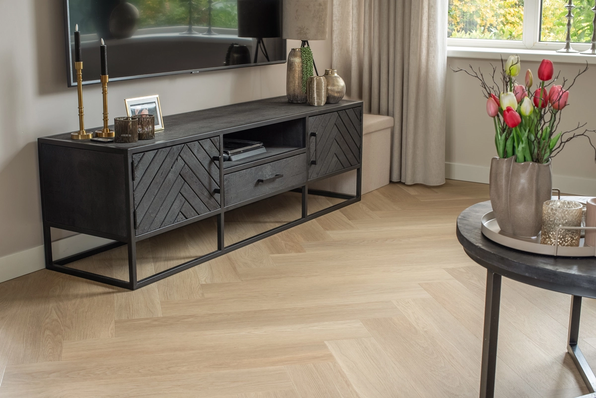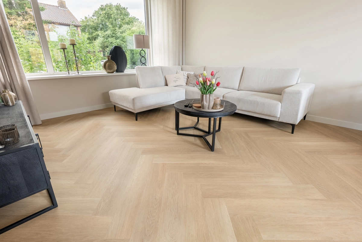 Lerne den außergewöhnlichen Floer Walfischgrät Klick Vinyl - Nordkaper Natur kennen, einen beeindruckend schönen Boden, den du auch selbst verlegen kannst! Mit seinem eleganten natürlichen Farbton verströmt dieser Walfischgrät Klick-Vinyl-Boden den Charme eines authentischen Eichenbodens mit allen Vorteilen von Klick-Vinyl. Diese großen Klick-Vinyl-Böden im Fischgrätmuster sind die größere, breitere und längere Version der "Standard"-Klick-Vinyl-Böden im Fischgrätmuster. Da Walfischgrät-Vinyl-Klickböden mit einem starren Mineralkern ausgestattet sind, stehen sie extrem stabil auf dem Boden und sind 100% wasserdicht.