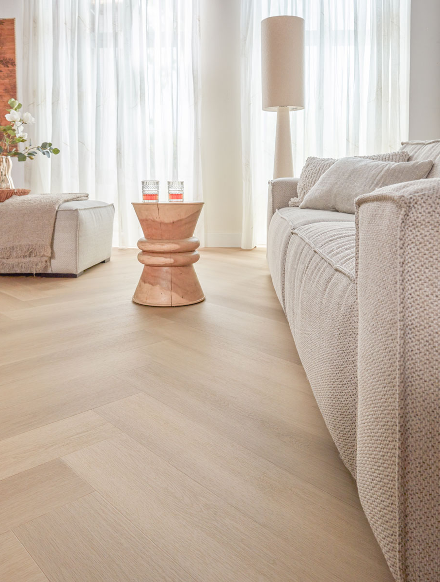 Entdecke das Floer Walfischgrät Klick Vinyl, ein großes und beeindruckendes Fischgrät-Vinyl, das du selbst verlegen kannst! In dieser beigen Farbe hat das Walfischgrät Klick Vinyl - Swordfish Sand das Aussehen eines echten Eichenholzbodens, aber kombiniert mit allen Vorteilen von Klick Vinyl. Kennst du das Fischgrät-Klick-Vinyl? Dies ist die größere, breitere und längere Version dieser Standard-Fischgrät-Böden. Die XL-Klick-Fischgrät-Böden sind außerdem pflegeleicht und 100% wasserfest: Das sind natürlich nur einige der vielen Vorteile dieser Klick-Vinyl-Böden.