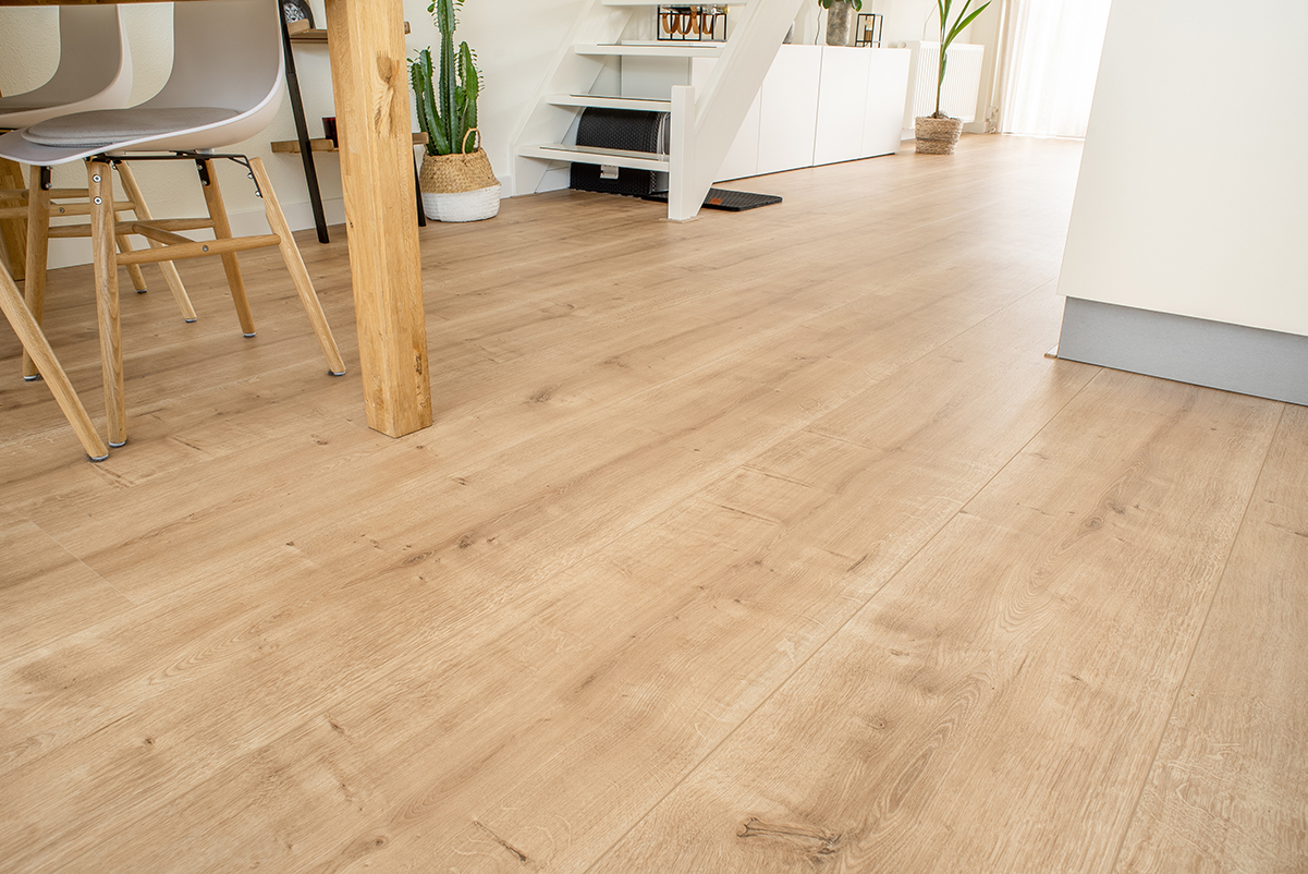 Die Verlegemethode für das Wiener Spitze Muster ist der des Fischgrätmusters sehr ähnlich, mit einem wichtigen Unterschied: der Winkel, in dem die Dielen verlegt werden. Bei dem Wiener Spitze Muster werden die Dielen in einem 135-Grad-Winkel verlegt, im Gegensatz zu dem 45-Grad-Winkel beim Fischgrätmuster. Durch diesen 135-Grad-Winkel entsteht ein sich wiederholendes Muster aus länglichen Sechsecken, das dem Raum ein elegantes und anspruchsvolles Aussehen verleiht. Insgesamt wirkt das Muster etwas weicher und subtiler als Fischgrät. Hast du gerade Chevron Vinyl Dielen gekauft und möchtest dieses Muster selbst verlegen? Dann empfehlen wir dir, unsere Schritt-für-Schritt-Anleitung zum Verlegen von Vinyl Dielen zu lesen, damit Du gut vorbereitet bist!